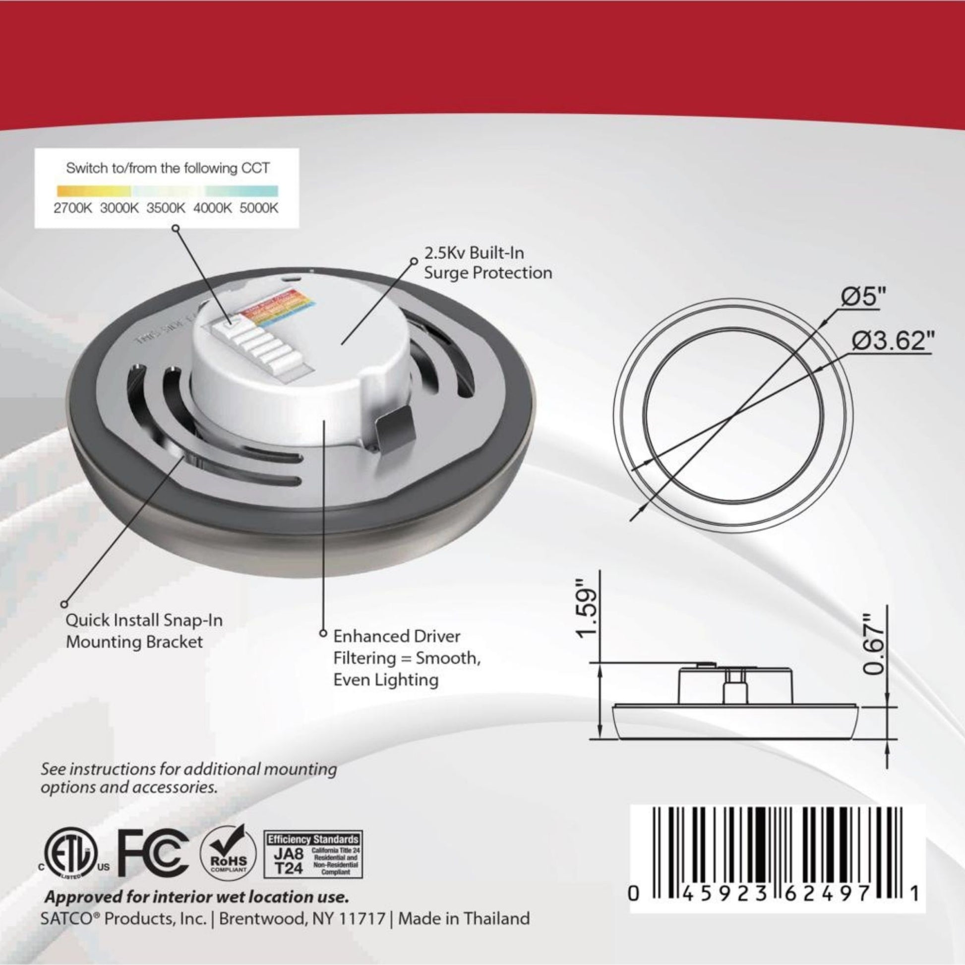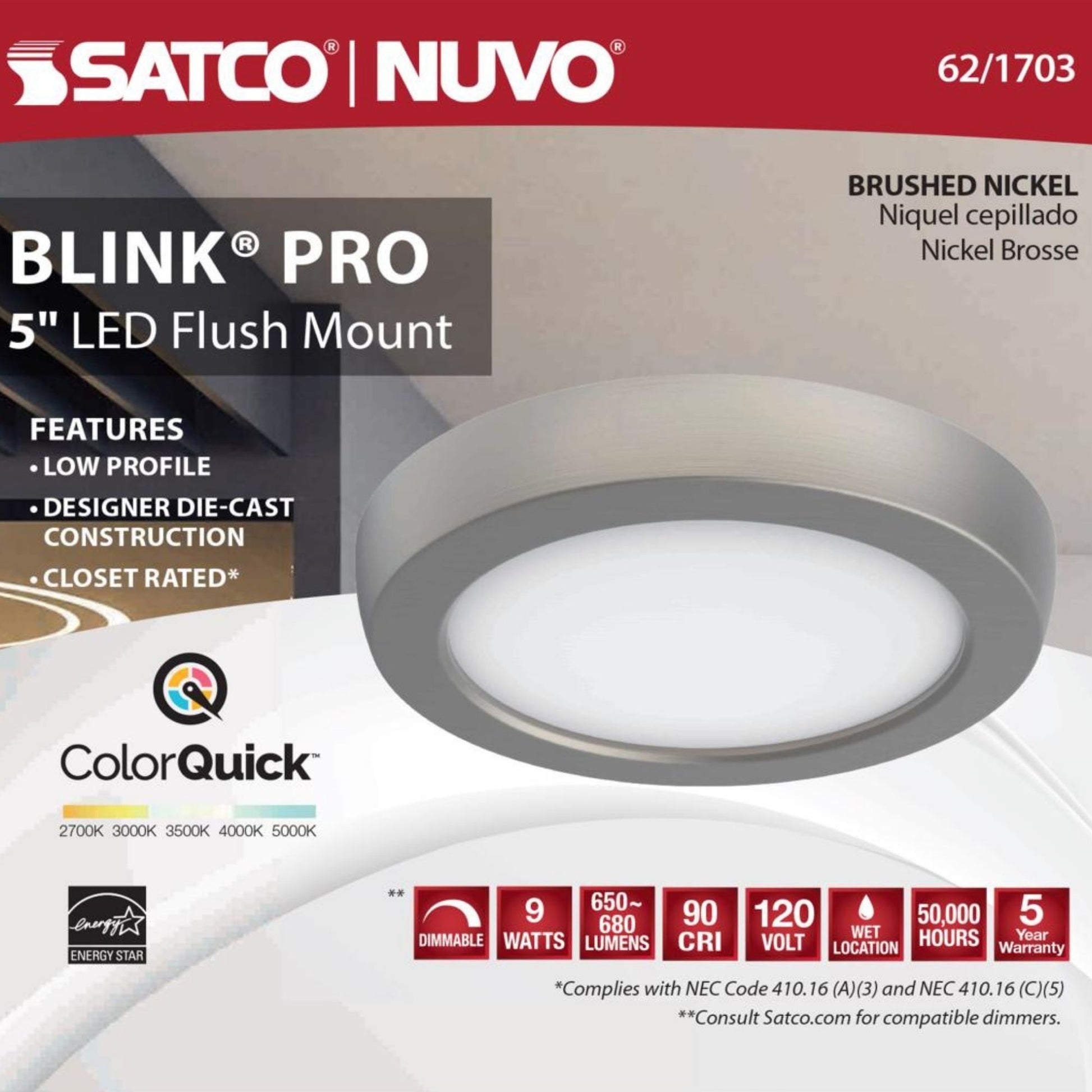 Blink 5" LED Round Disk Light, 9W, 5CCT, Brushed Nickel Finish