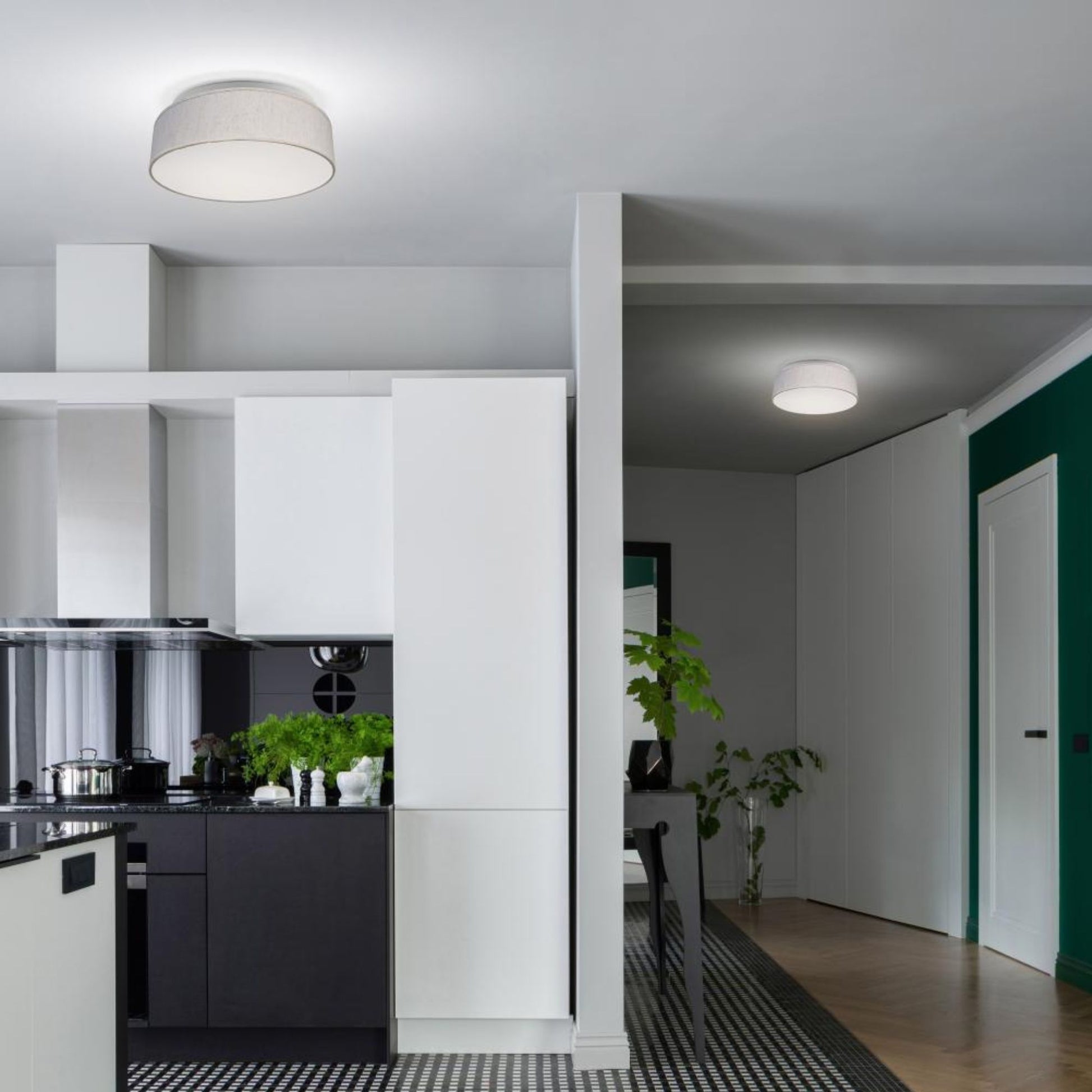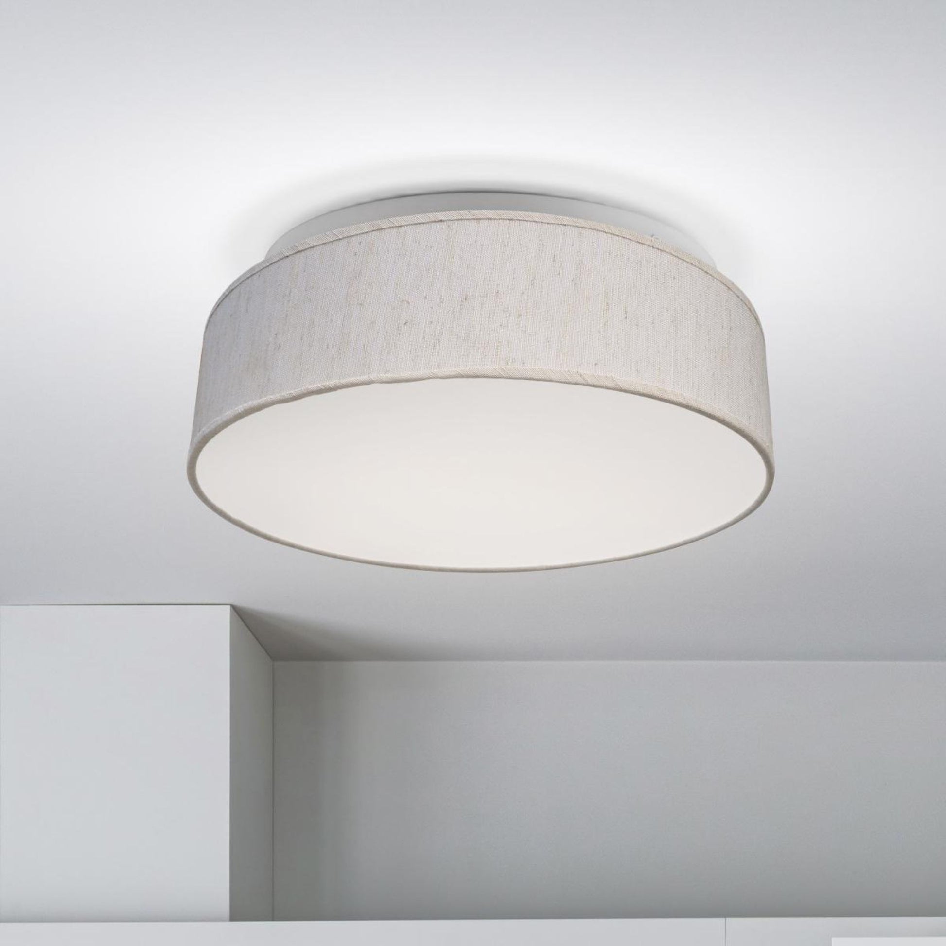 15" LED Flush Mount Ceiling Light with Beige Fabric Shade, 3CCT