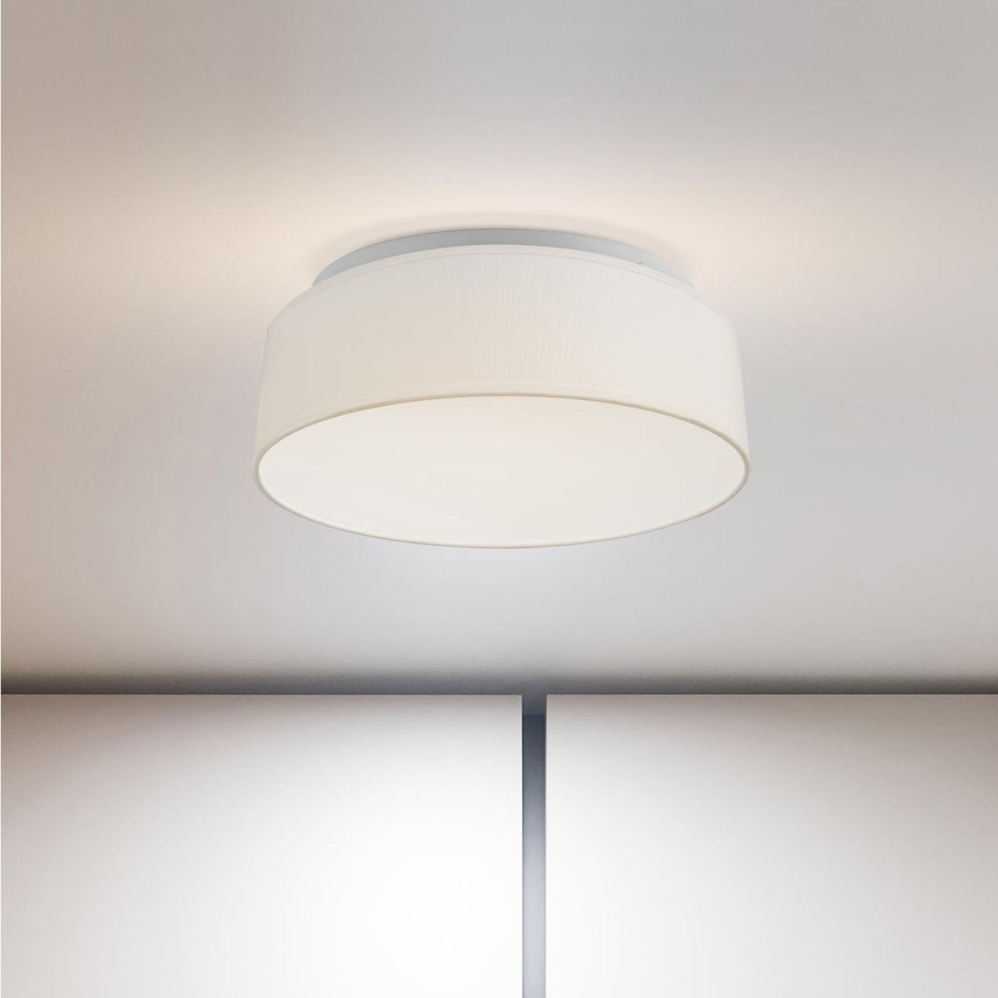 15" LED Flush Mount Ceiling Light with White Fabric Shade, 3CCT