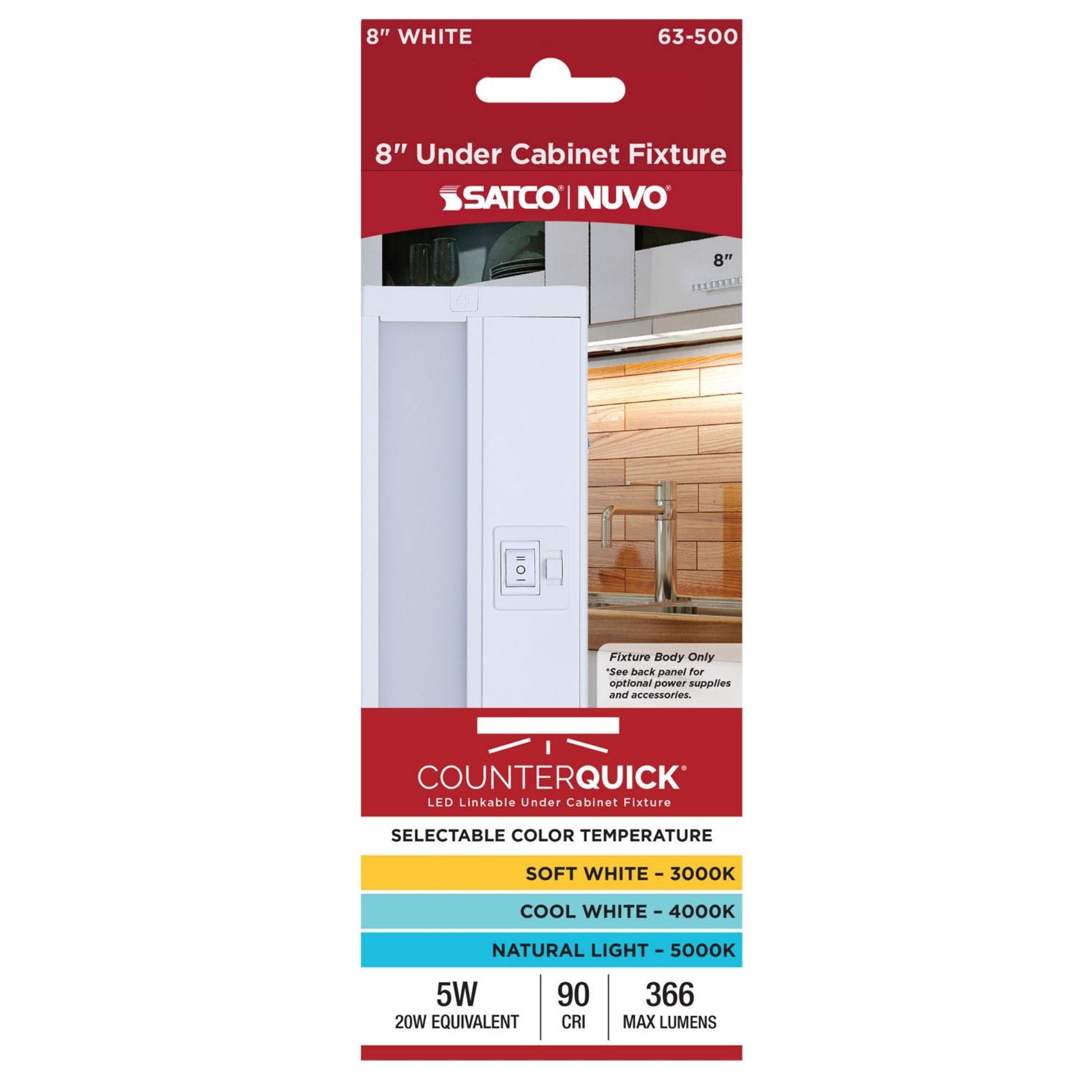 CounterQUICK 8 Inch Under Cabinet LED Light, 5W, CCT Selectable, 120V, White