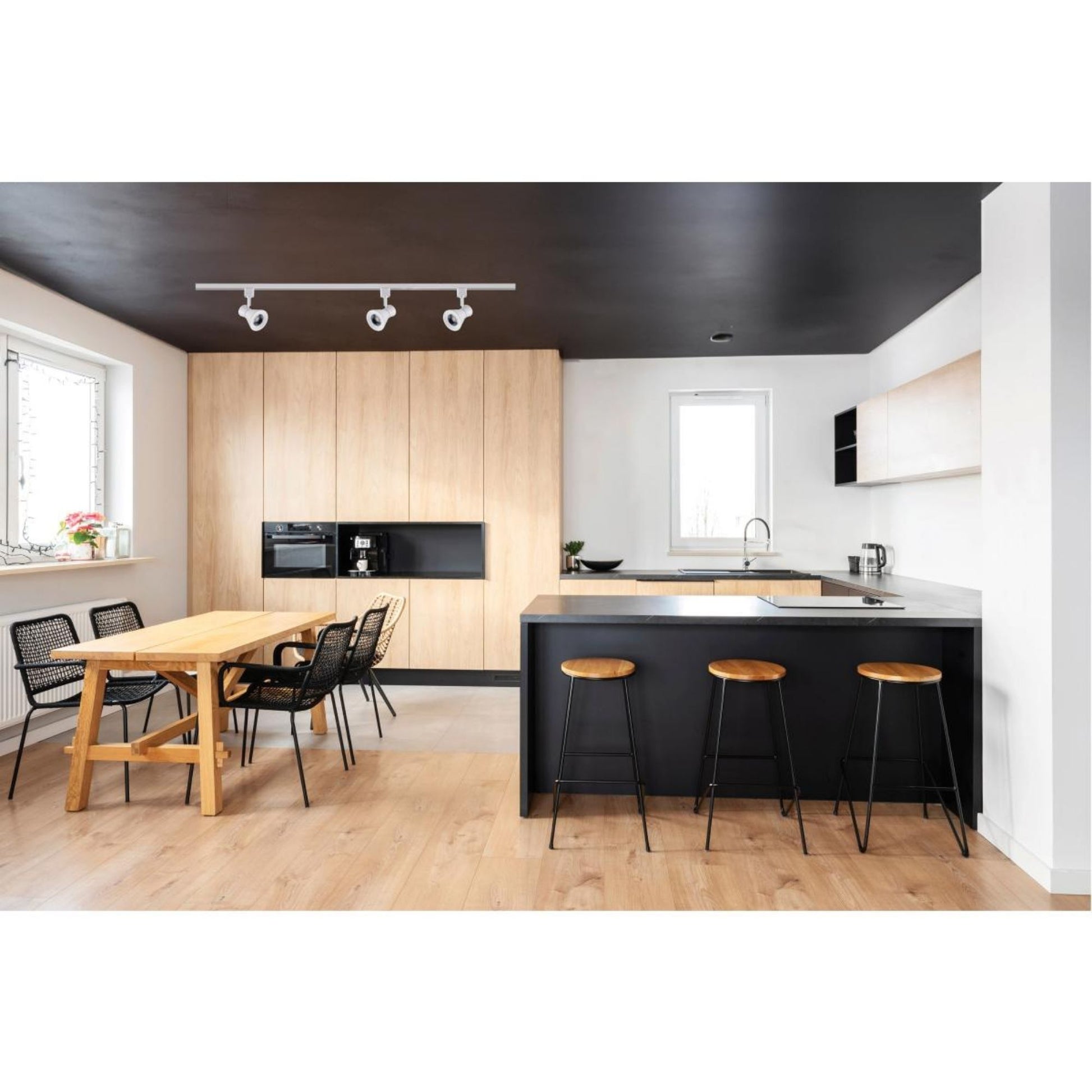 - LED track head comes with a matte white finish