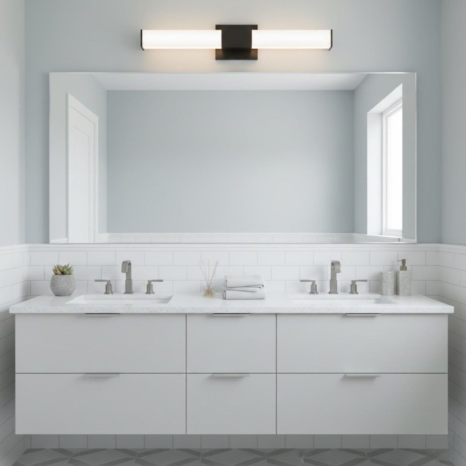 Whether you're renovating a master bath or updating a guest powder room, the RAB ALLURE vanity light provides the versatility, quality, and modern style that elevates any space. The 24" square design offers optimal coverage for most standard vanity configurations, ensuring flattering, shadow-free illumination for grooming and daily routines.