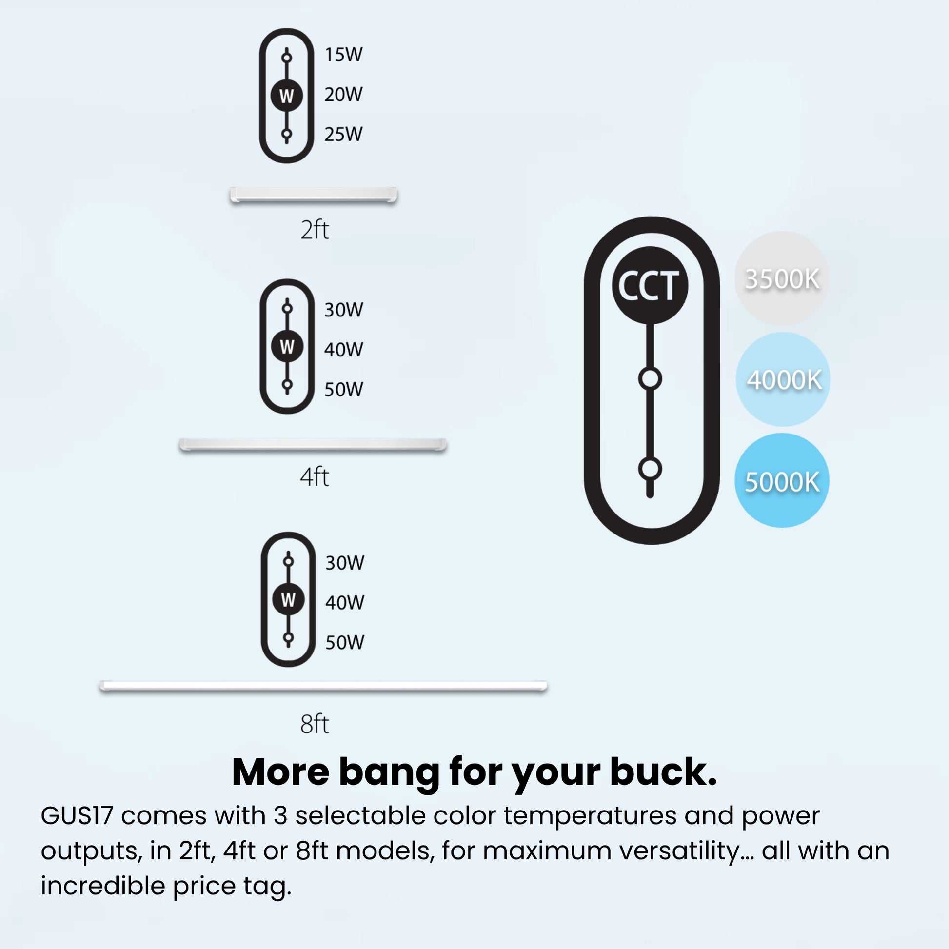 - Massive, Selectable Lumen Output: Powerfully illuminates with up to 12,700 lumens, featuring selectable wattages (90W/80W/70W) and color temperatures (3500K/4000K/5000K).