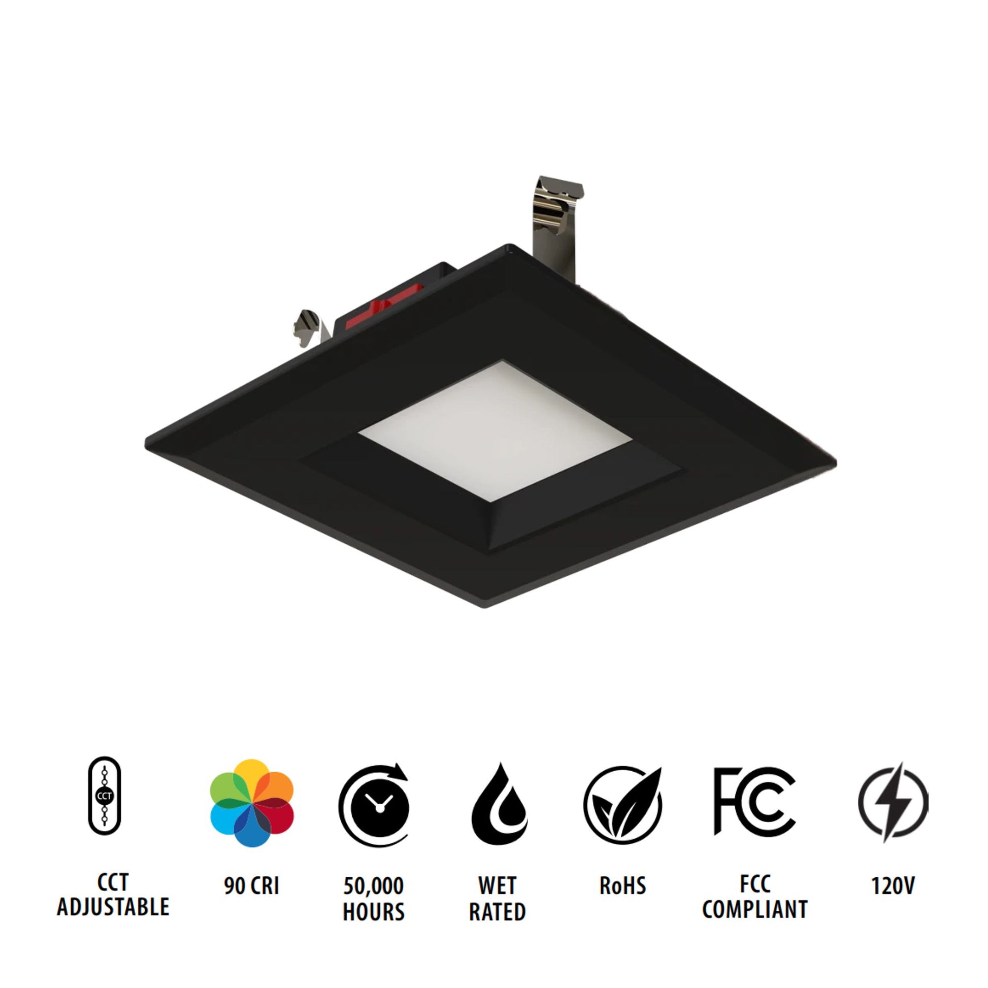 4" R34 Retrofit LED Can Light, 600 Lm, CCT-Adjustable, Black Square Smooth Trim