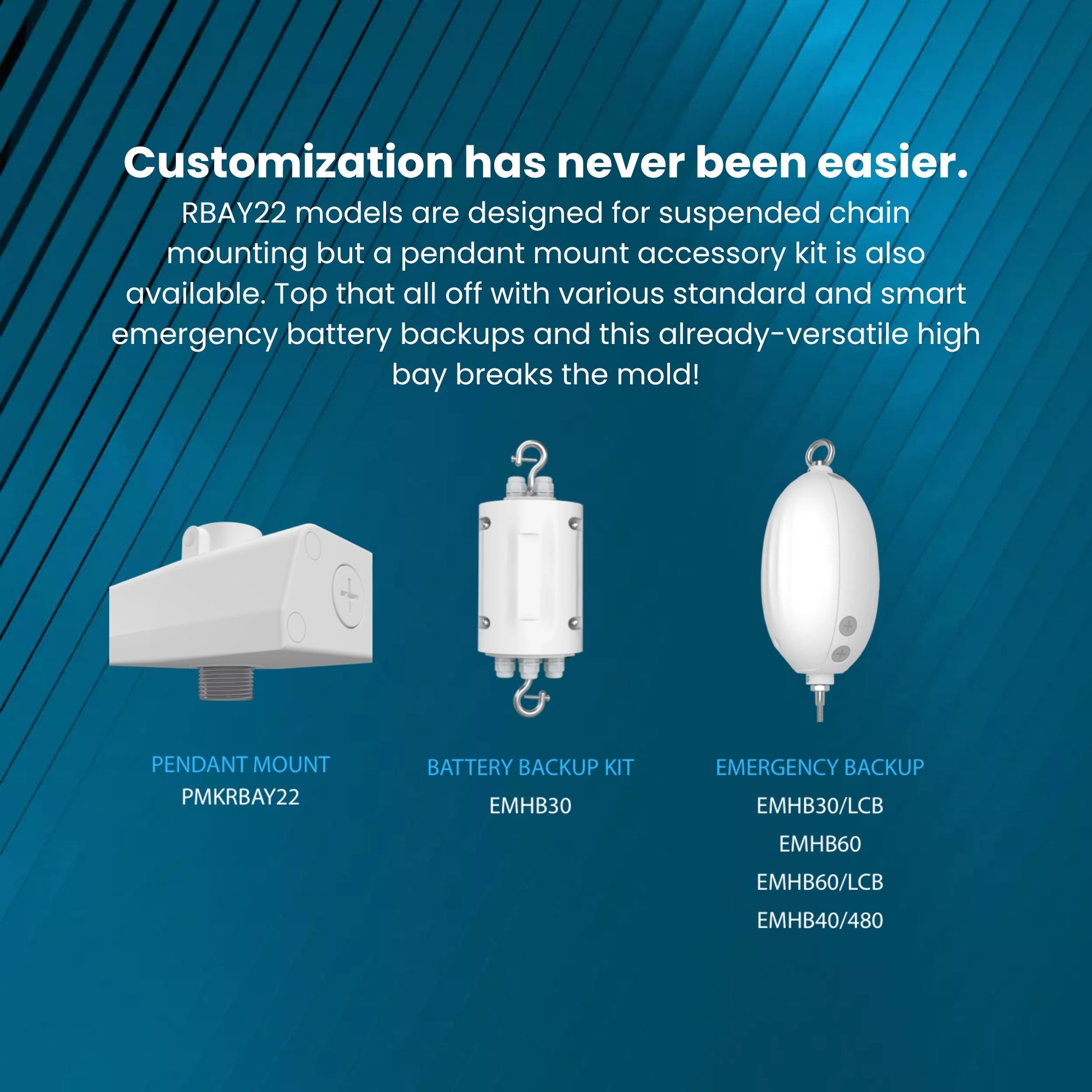 100/130/160W • Selectable Angle 55/85/105º • V-Hook & Chain Included