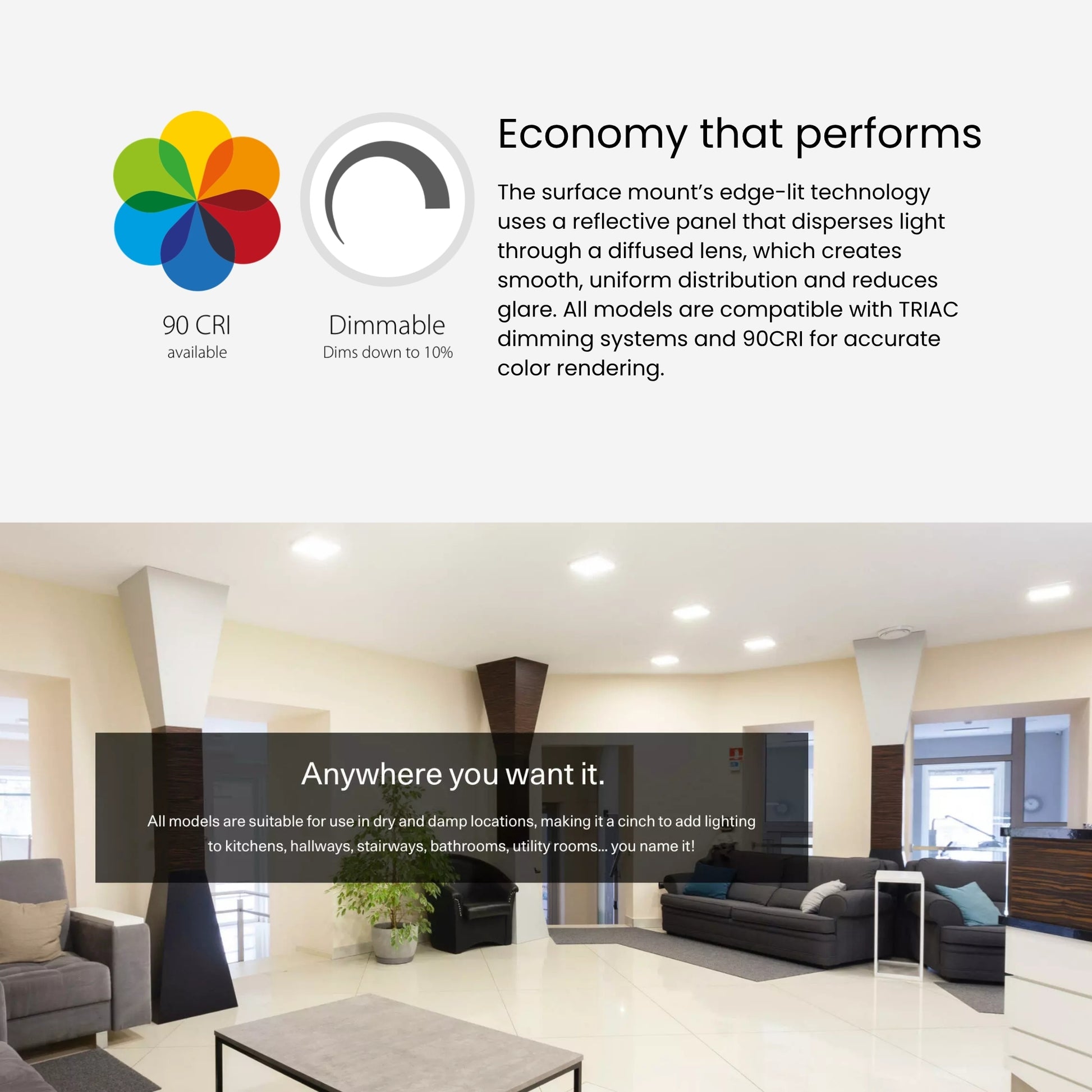 Edge-Lit • Selectable 27K/30K/35K/40K/50K • TRIAC/ELV Dimmable