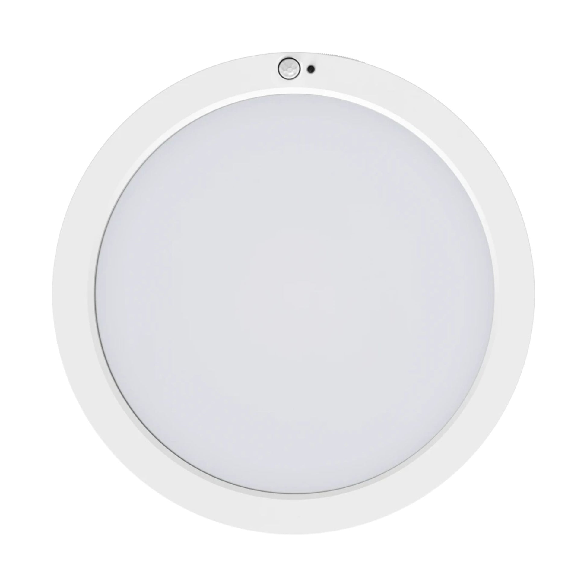 The RAB SUMO-R-9/PIR features contemporary round surface mount installation. Installation is straightforward: turn off power at the circuit breaker, attach the fixture to the junction box, adjust motion sensor settings and color temperature via integrated dip switches, make wire connections between fixture and junction box with wire connectors. The compact 9" round design with frosted polycarbonate lens ensures uniform, smooth illumination. The integrated PIR sensor provides automatic lighting control with customizable motion modes and hold times.
