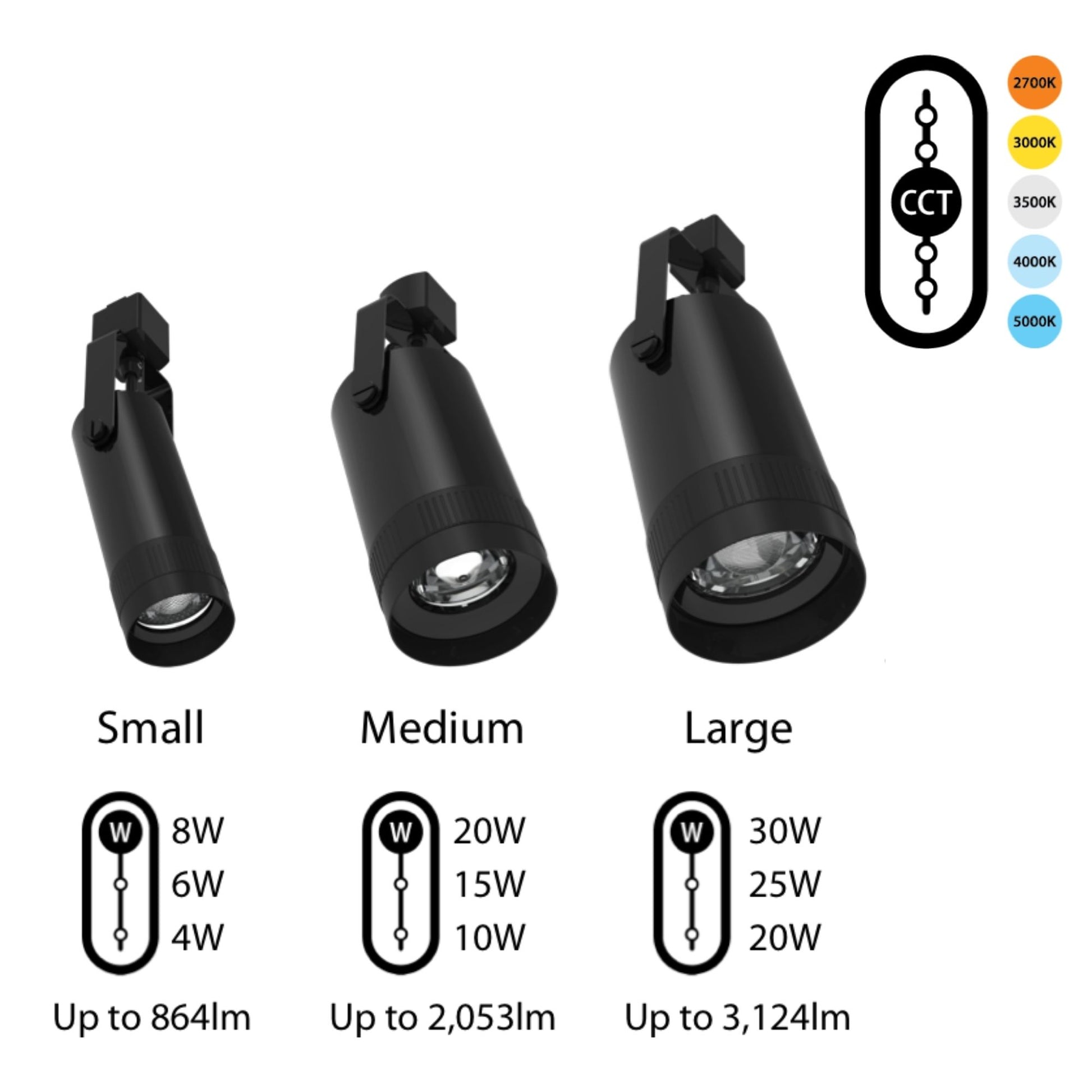 TRACK22 Small Track Head, 860 Lumens, 5-CCT, Adjustable Optics 15° - 55°, White