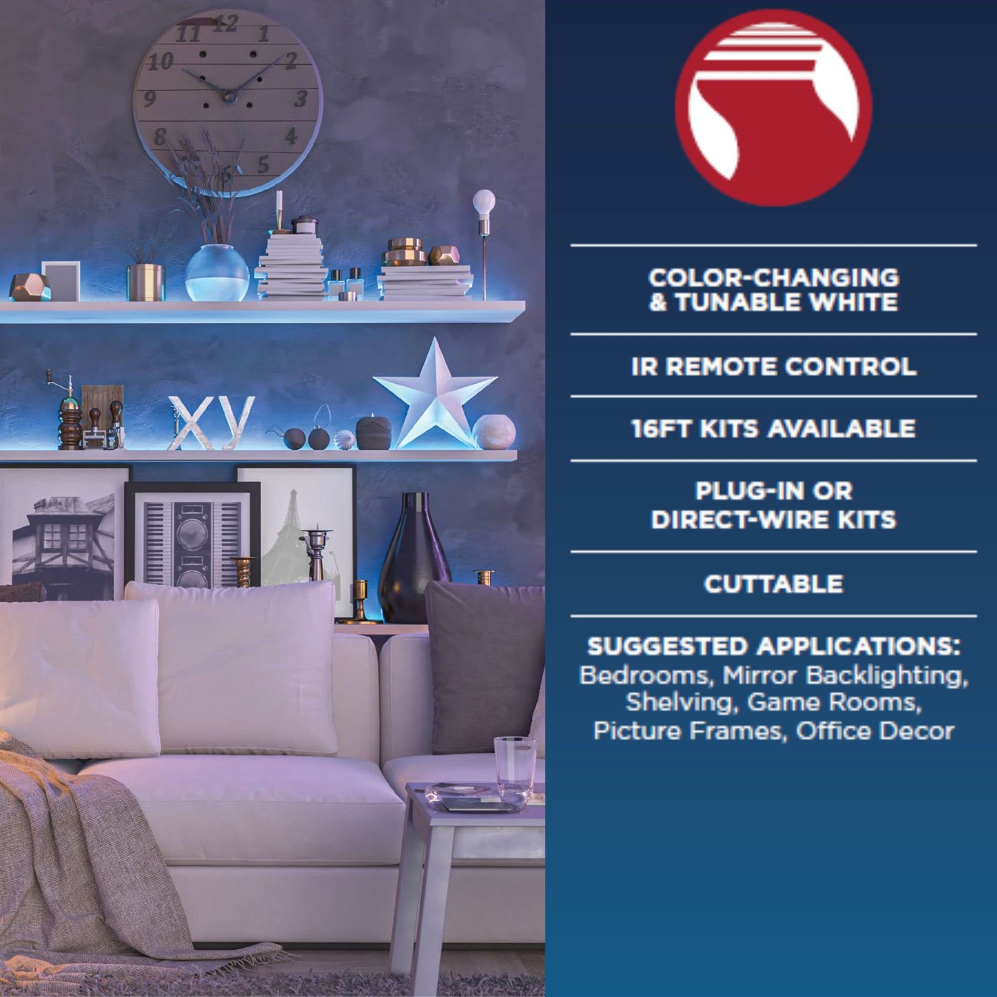 Dimension Performer LED Tape Light Kit , 16Ft Reel, RGB + Tunable White, 24V