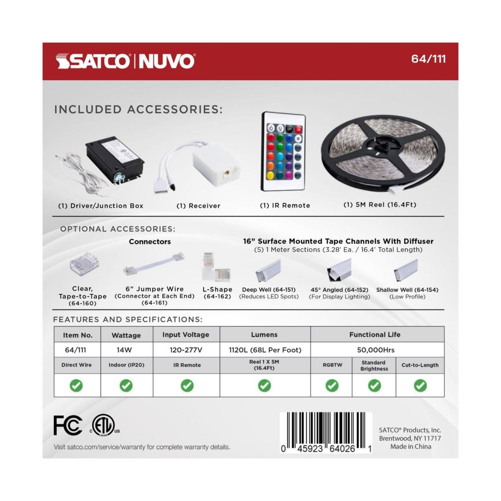 RGBTW • 14W • 1120Lm • J-Box connection • IR Remote Included • Indoor