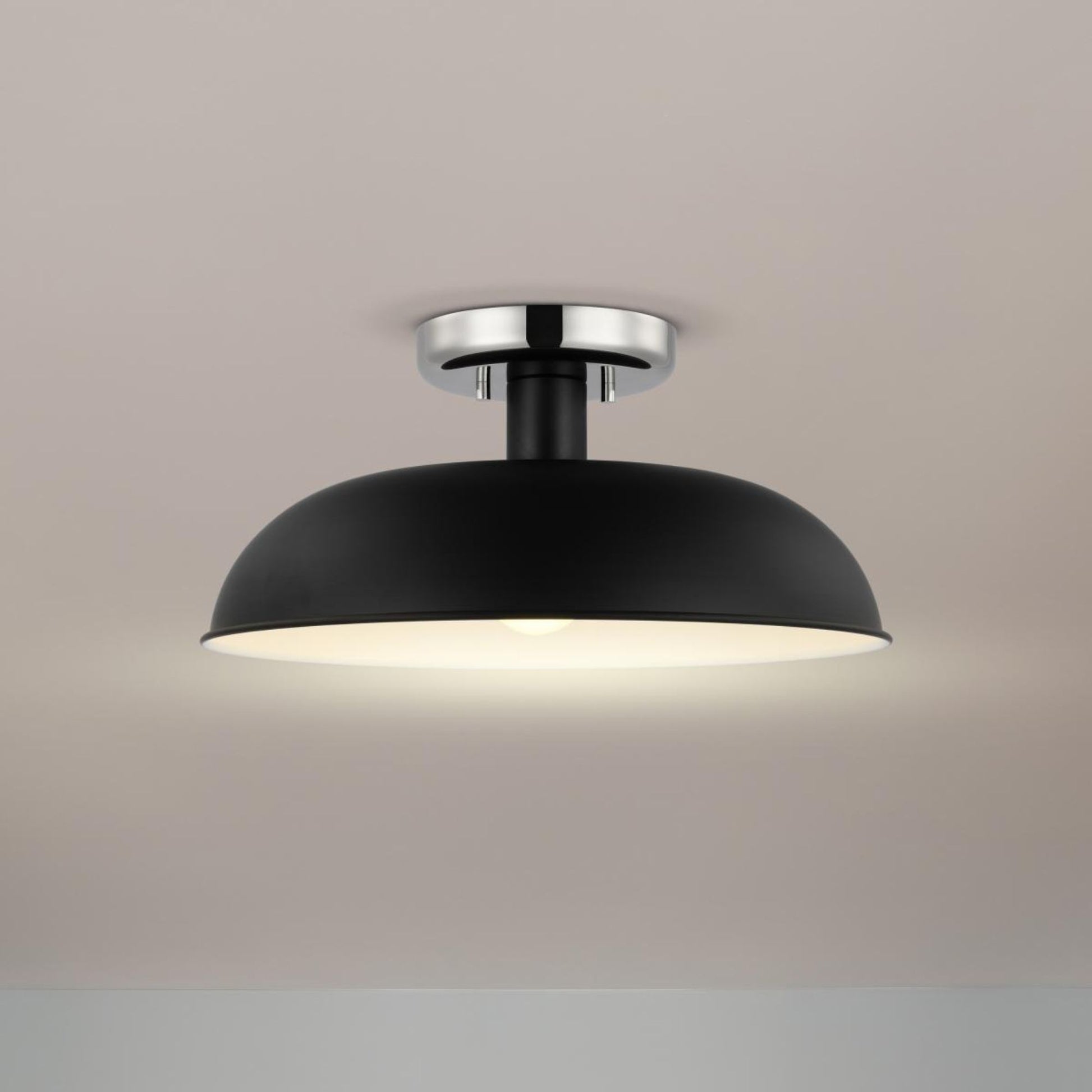 Colony 15" Flush Mount, Matte Black / Polished Nickel Finish
