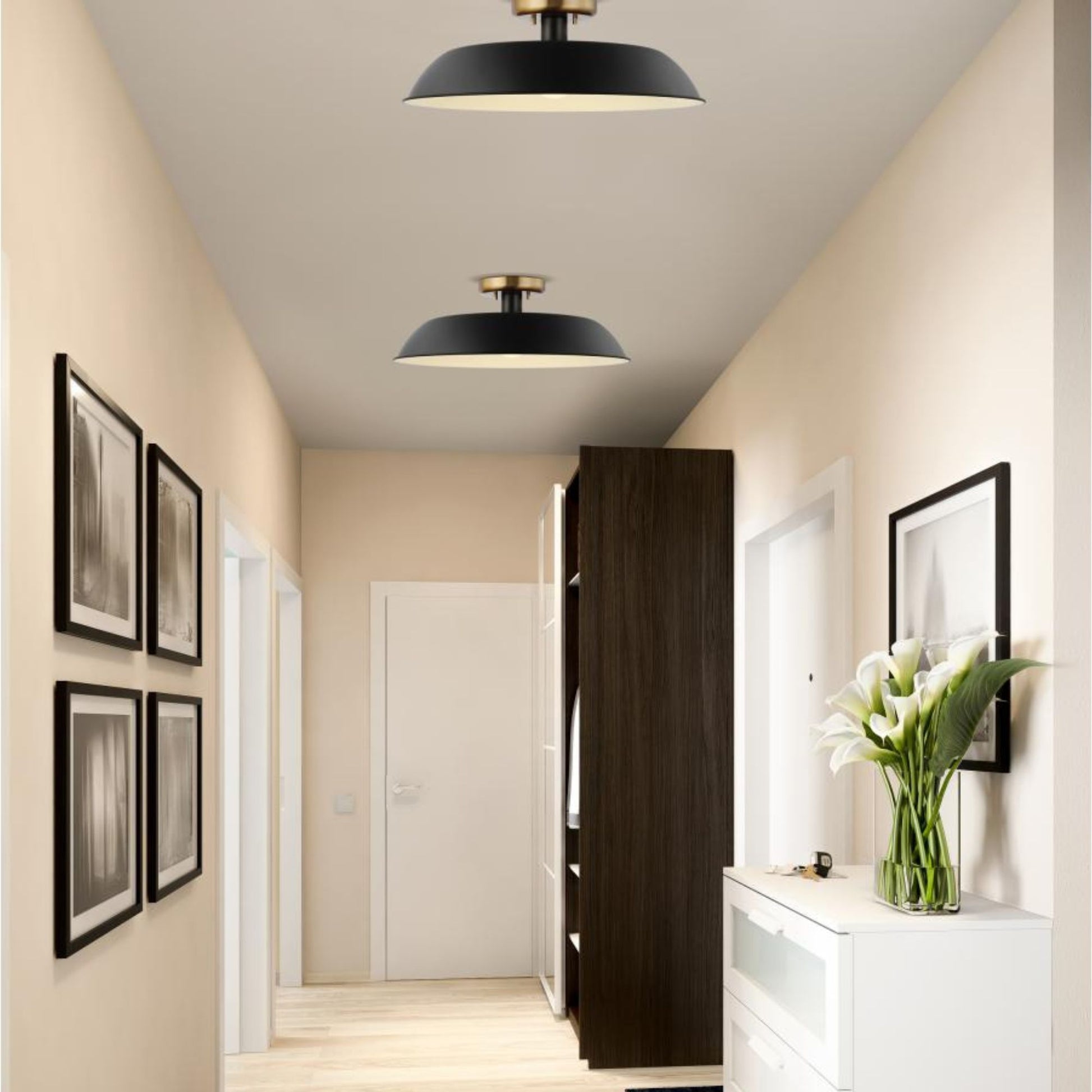 Colony 20" Flush Mount, Matte Black / Burnished Brass Finish