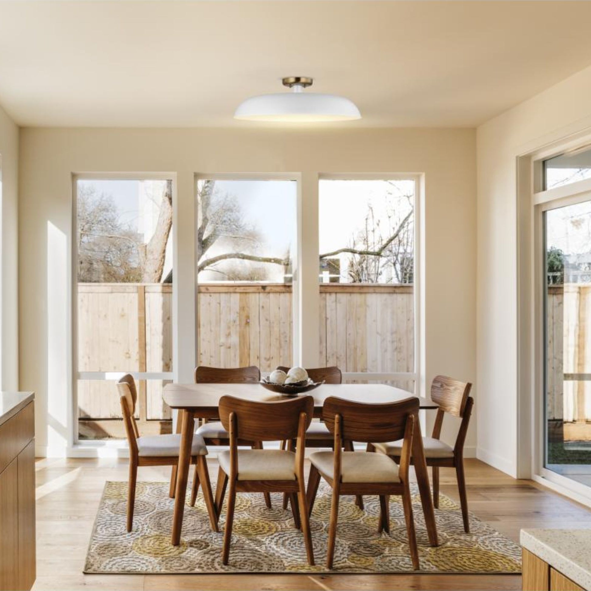 Colony 24" Flush Mount, Matte White / Burnished Brass Finish