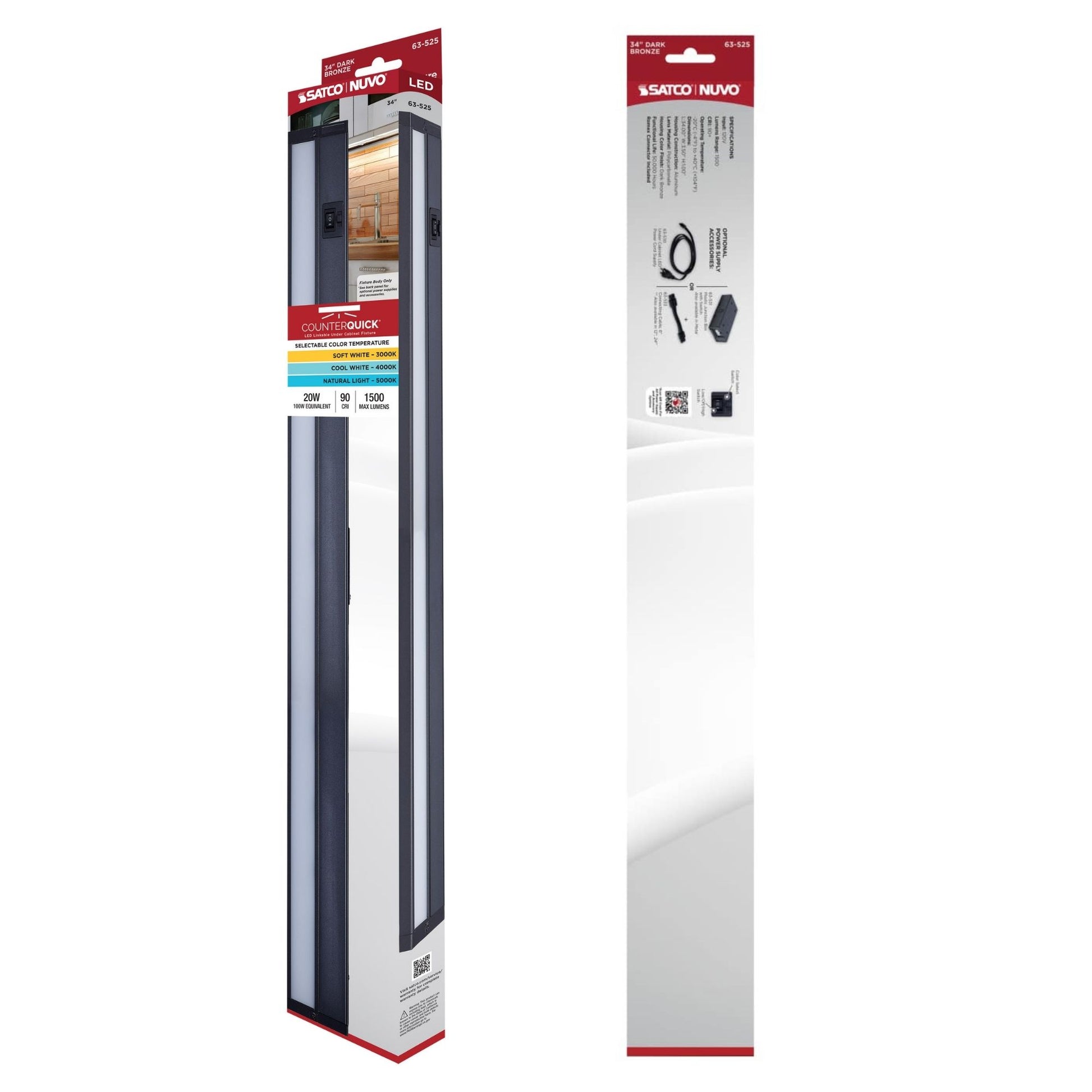 CounterQUICK 34 Inch LED Under Cabinet Light, 20W, CCT Selectable, 120V, Bronze