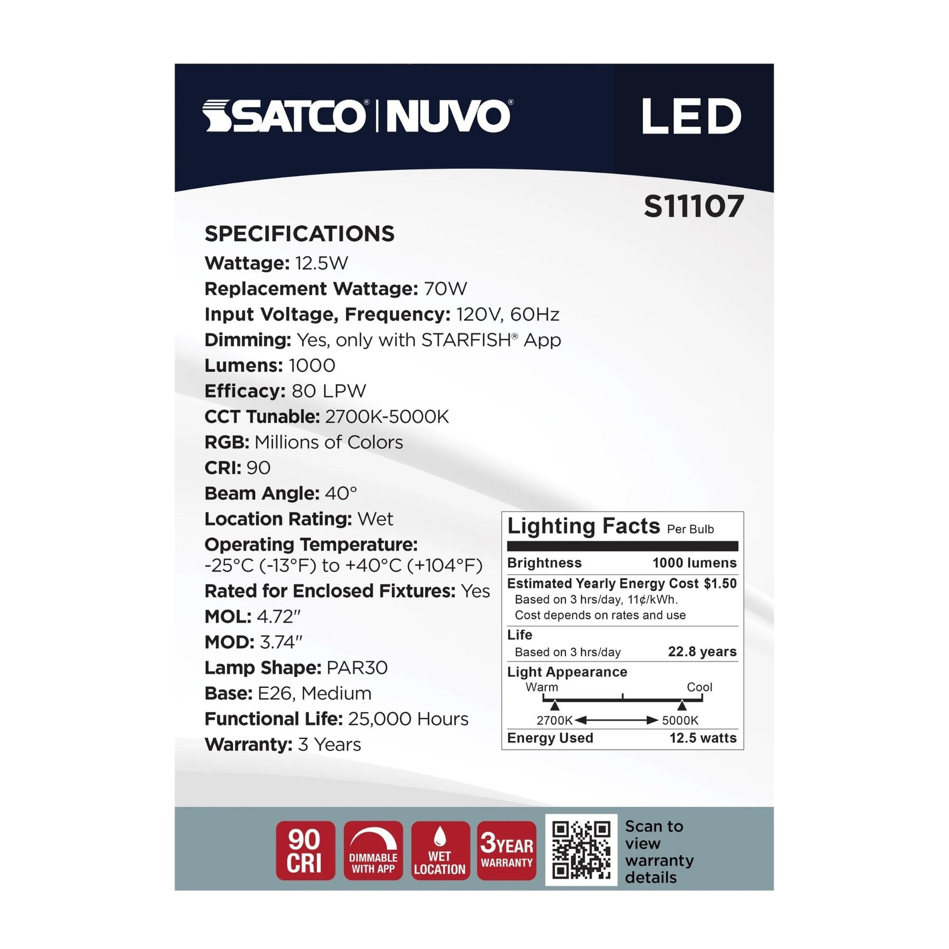 Backed by a 3-year warranty and rated for 25,000 hours of use, this E26 base PAR30 bulb combines smart innovation with enduring performance. Experience the luxury of personalized spot lighting that adapts to your lifestyle—perfect for highlighting artwork, architectural details, merchandise displays, or creating dramatic accent layers in any setting.