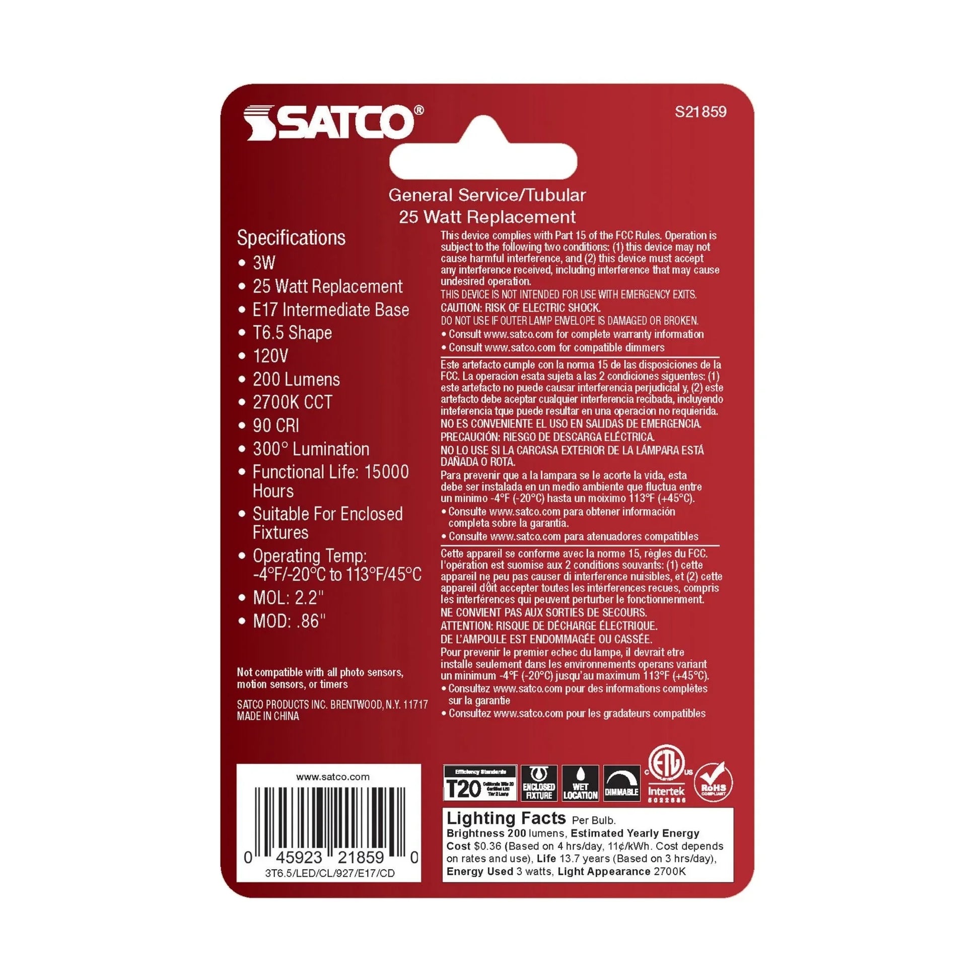 - Energy-efficient performance – 3W LED replaces 25W incandescent for lower energy consumption and cost savings