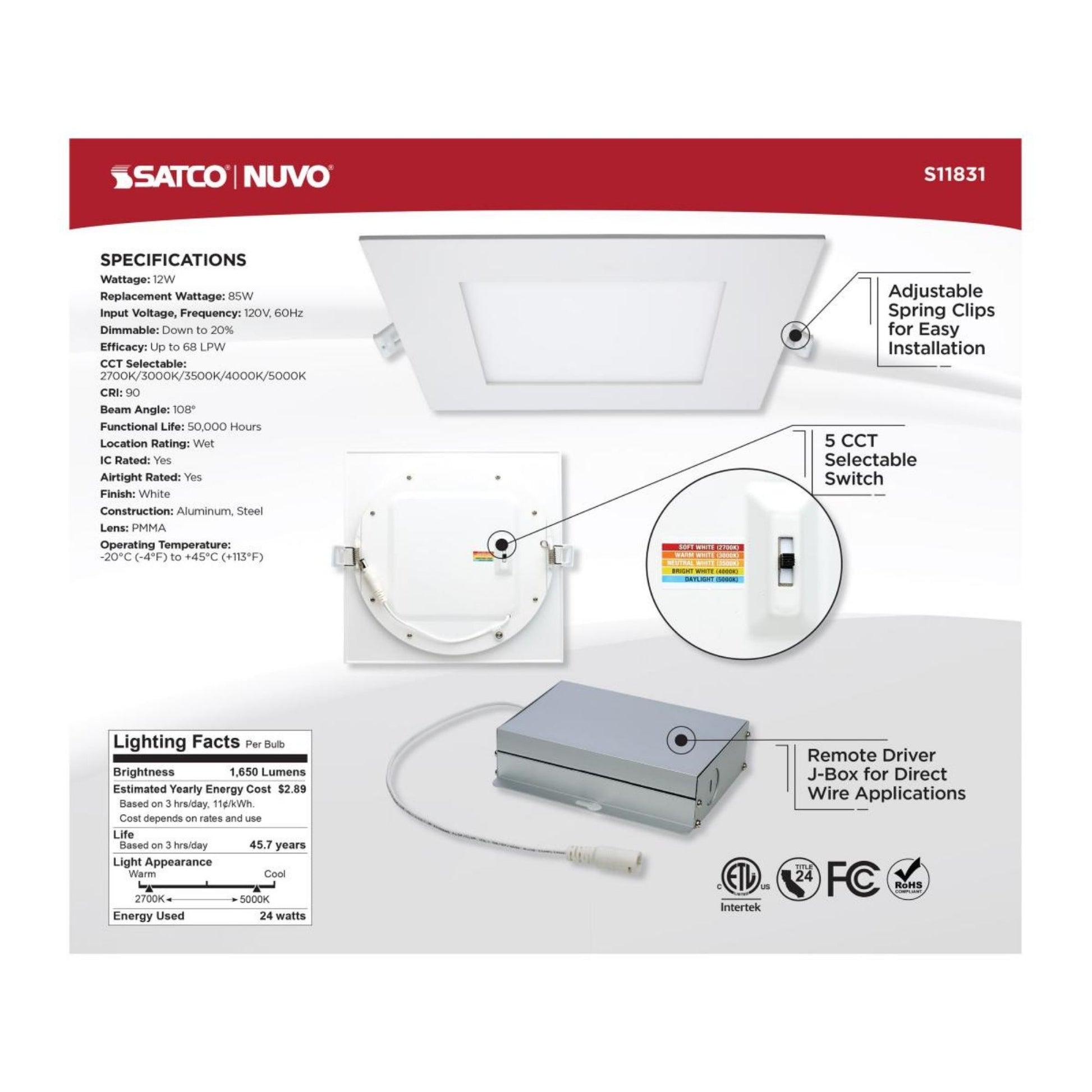 - Wet location rated and dimmable