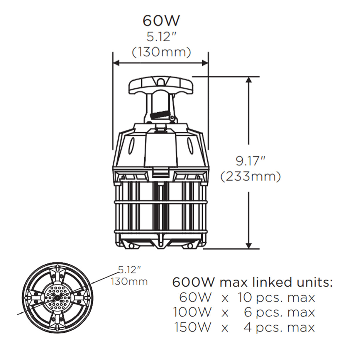 Temporary Work Light, 60W, 6000 Lumens, 6ft Cord & Plug, 120V