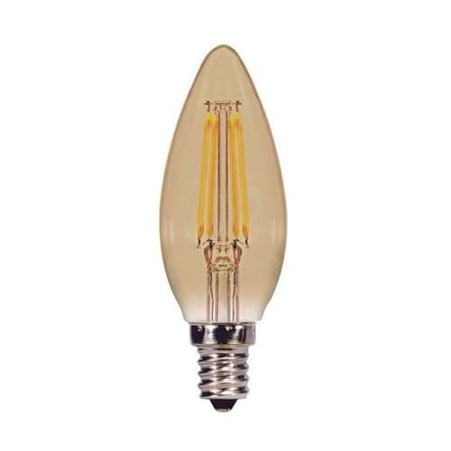 C11 Candle Filament LED Bulb, 4W, 300 Lumens, 2000K, E12 Candelabra Base, Amber Finish