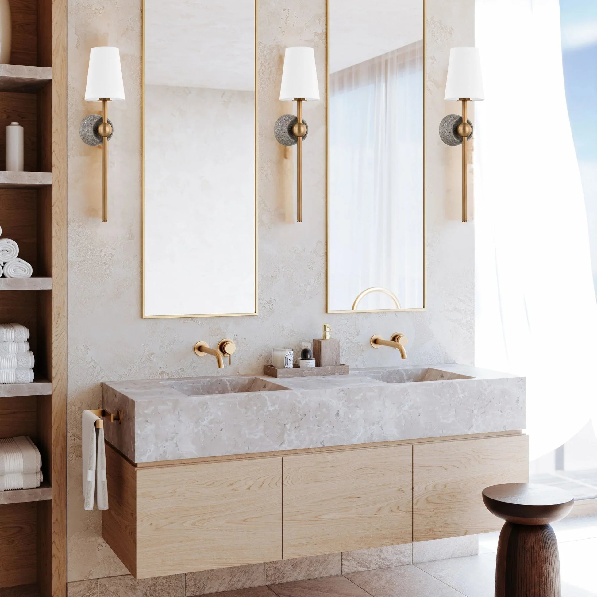 - Levitating Illusion: concave center of the stone backplate creates the illusion that the sconce is levitating in front of the stone.