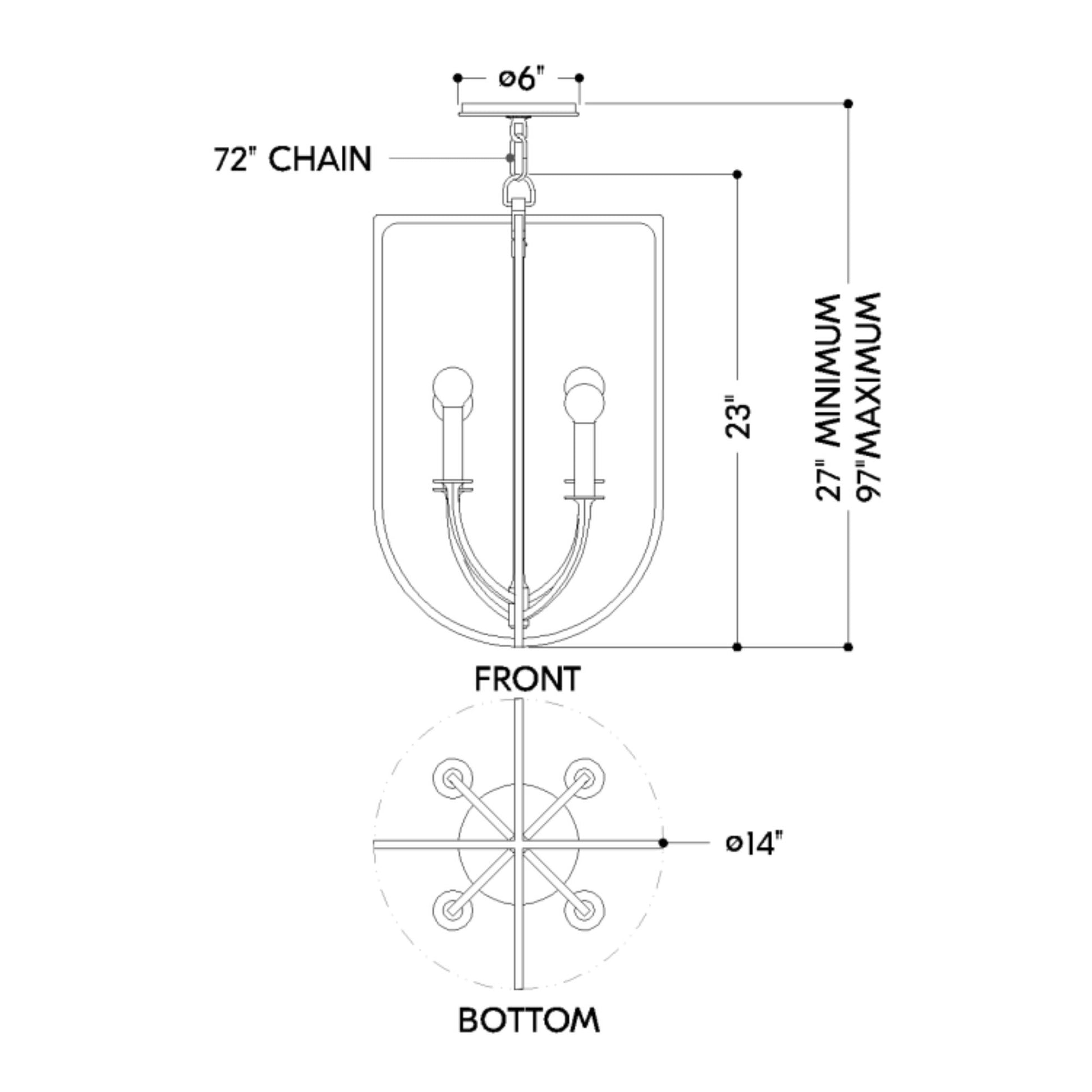Kael 23" 4-Light Hangining Lantern, Black Iron Finish