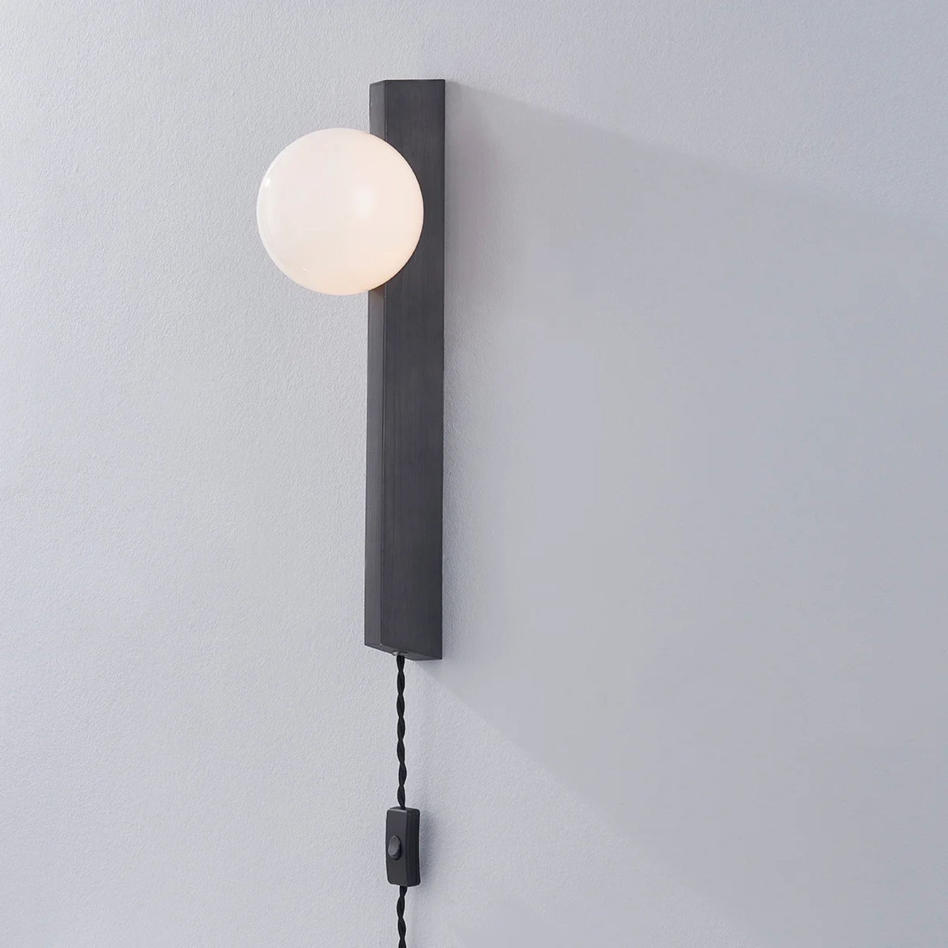 - Sleek Rectangular Design: Slim backplate and opal glass globe create understated modern elegance