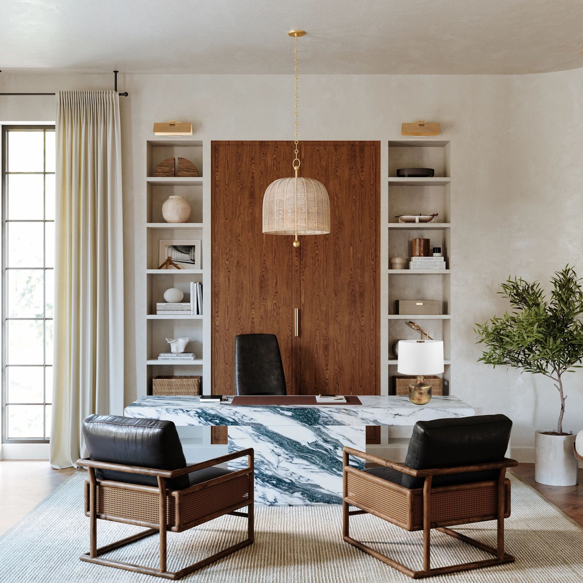 - Focal Point: Simple white linen shade ensures that Terron's base remains the focal point.