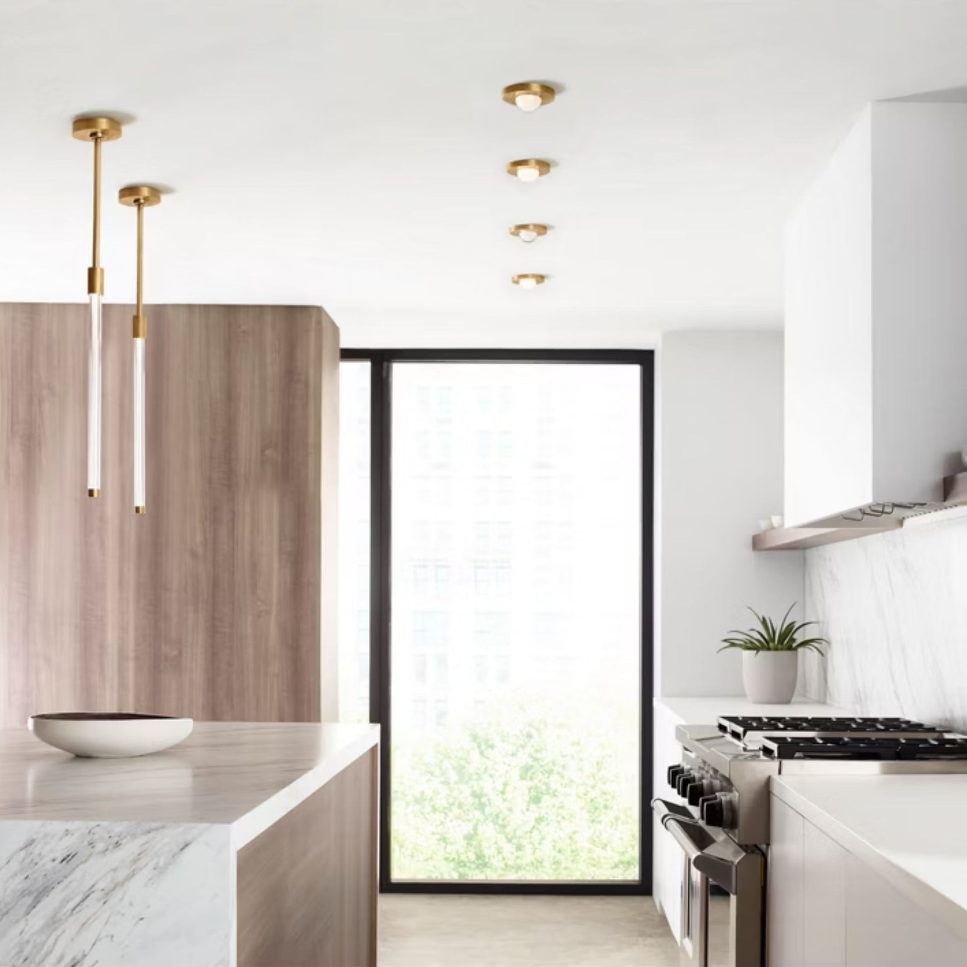 Ebell 5" LED Mini Flush Mount, 120-277V, Natural Brass Finish