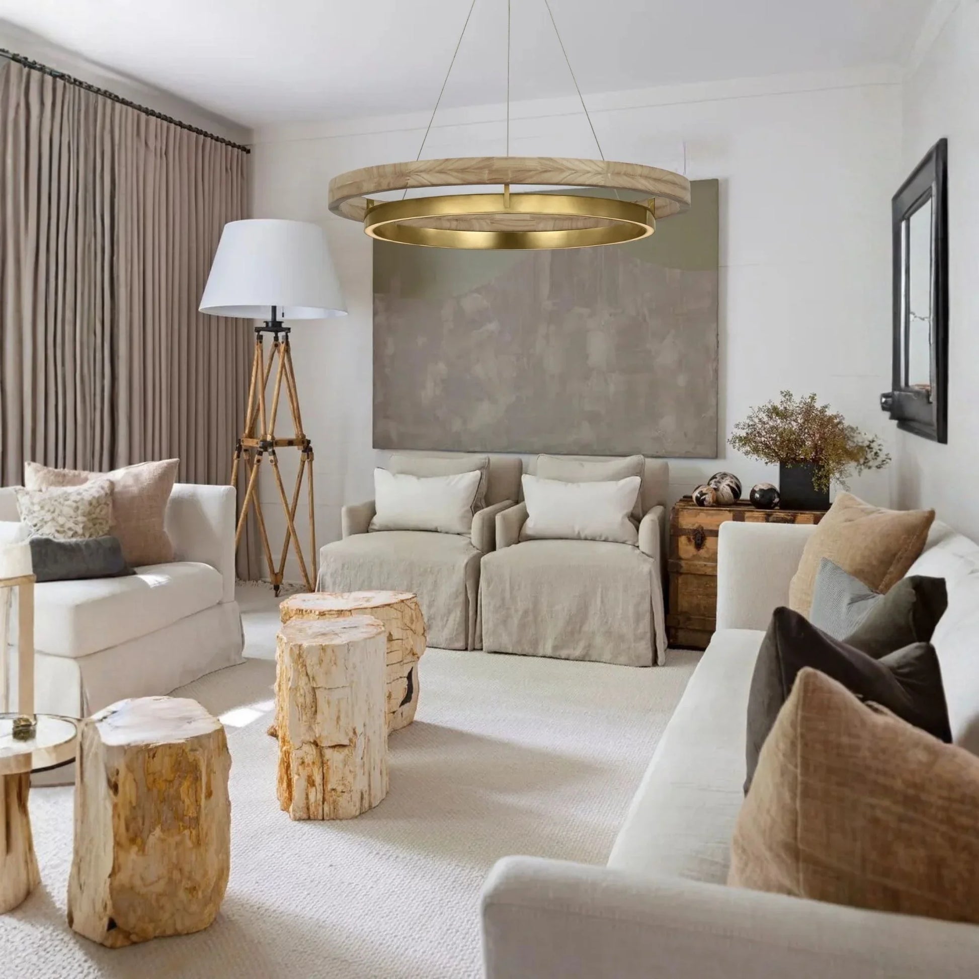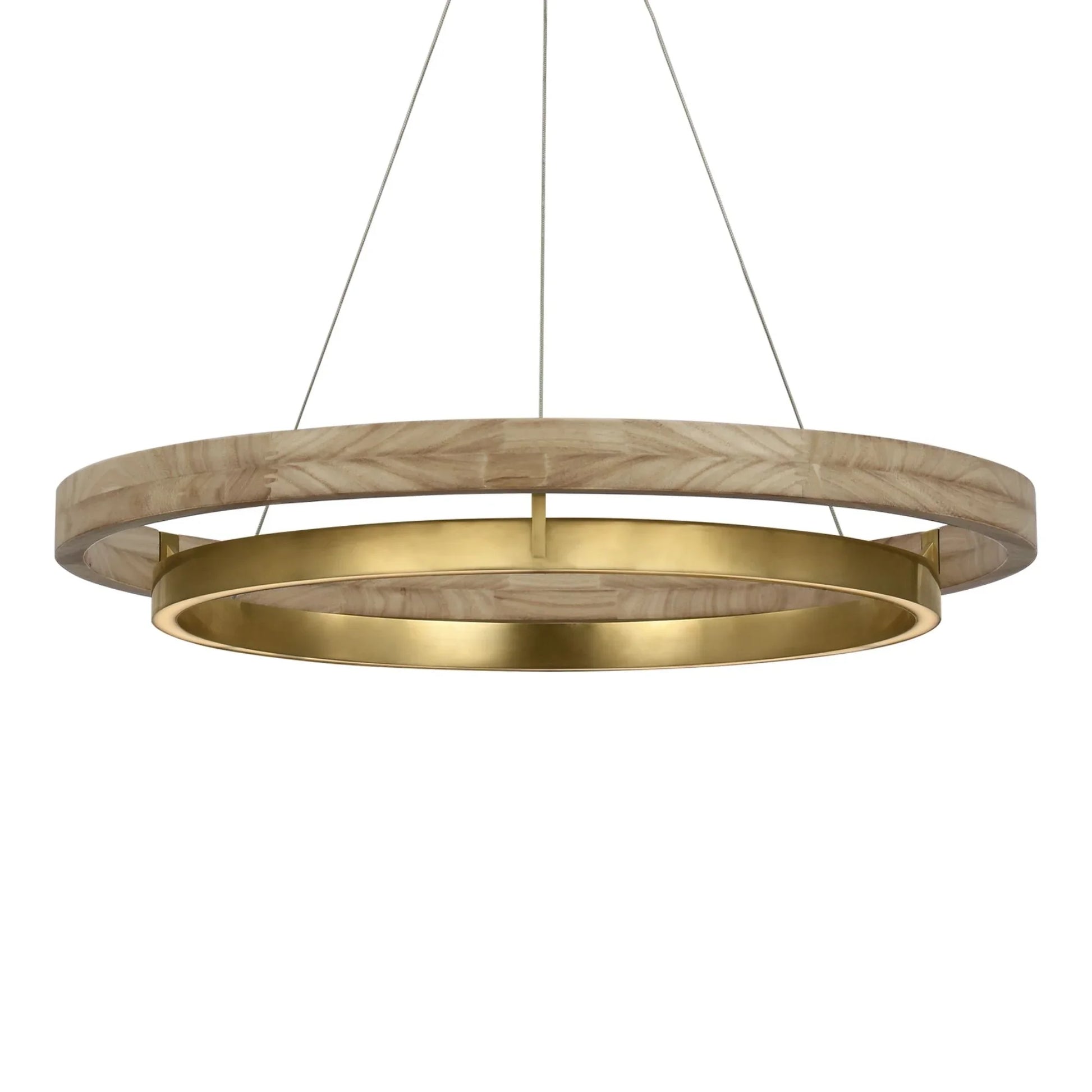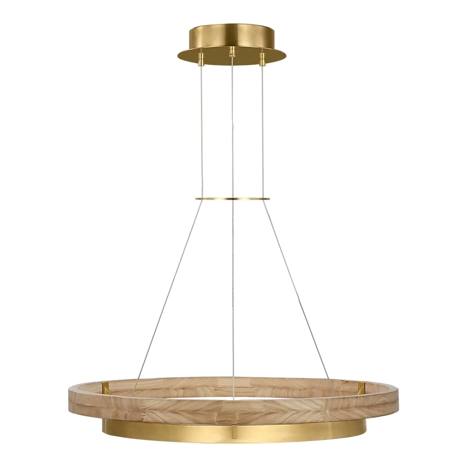 Grace 30" LED Chandelier, Antique Brass & Natural Oak Finish