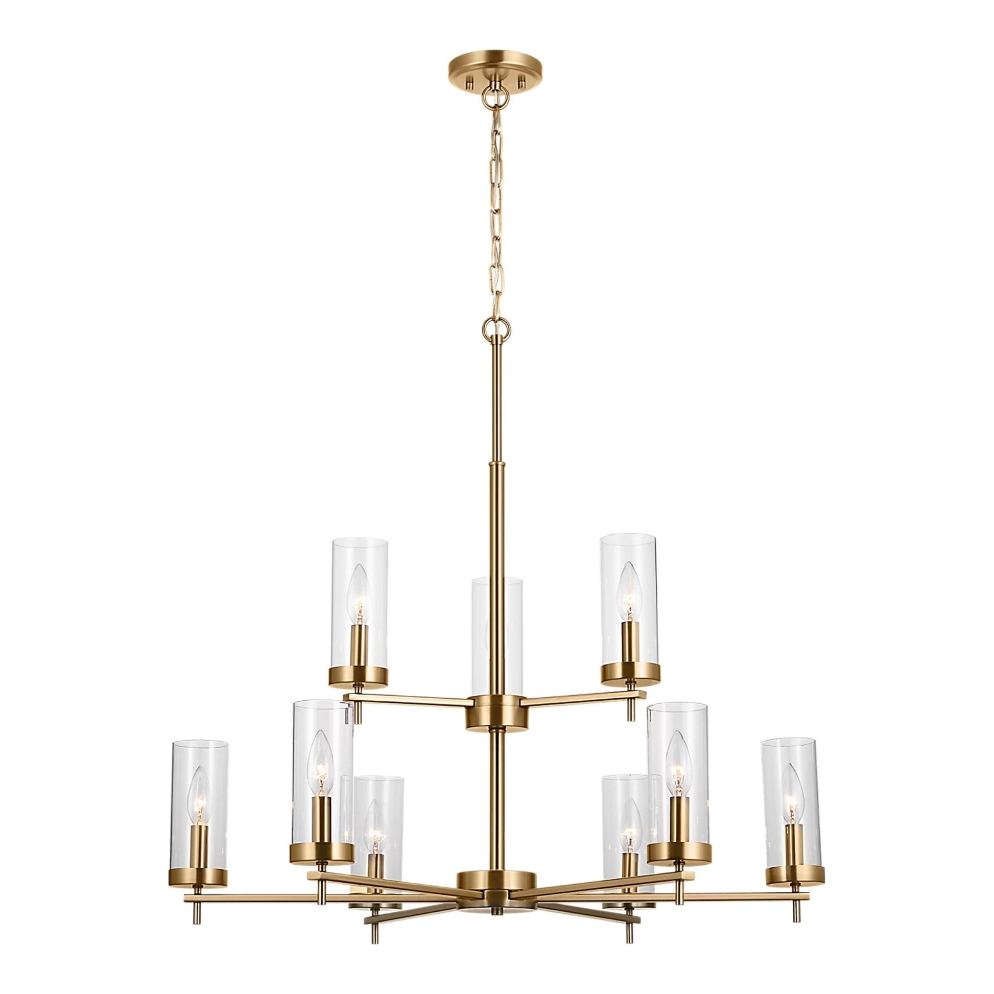 Zire 32" 9-Light Chandelier, Satin Brass Finish