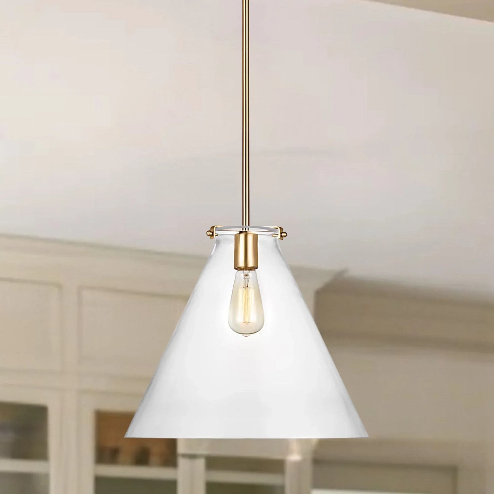Kate 16" Cone Pendant, Satin Brass Finish