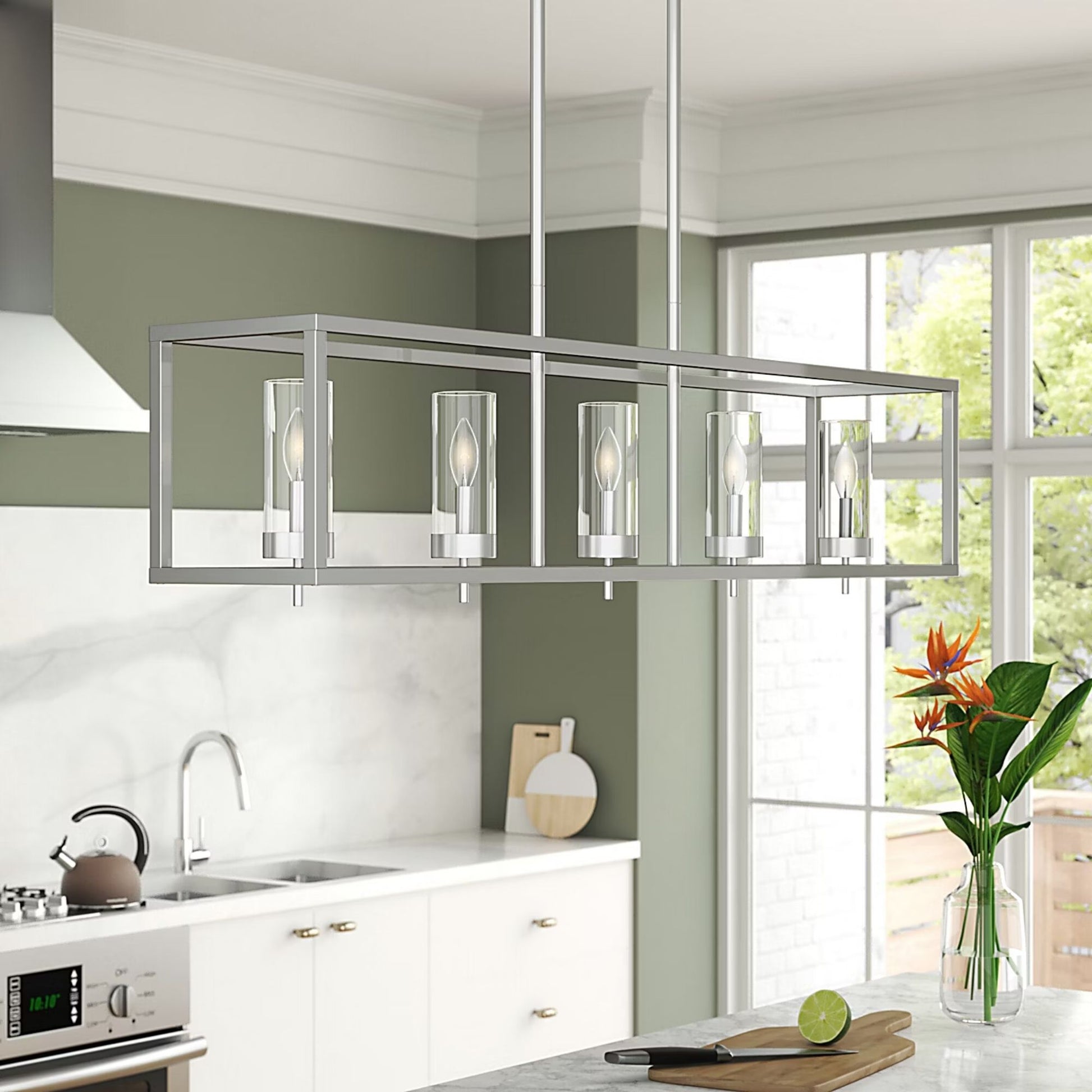 Zire 48" 5-Light Island Pendant, Chrome Finish